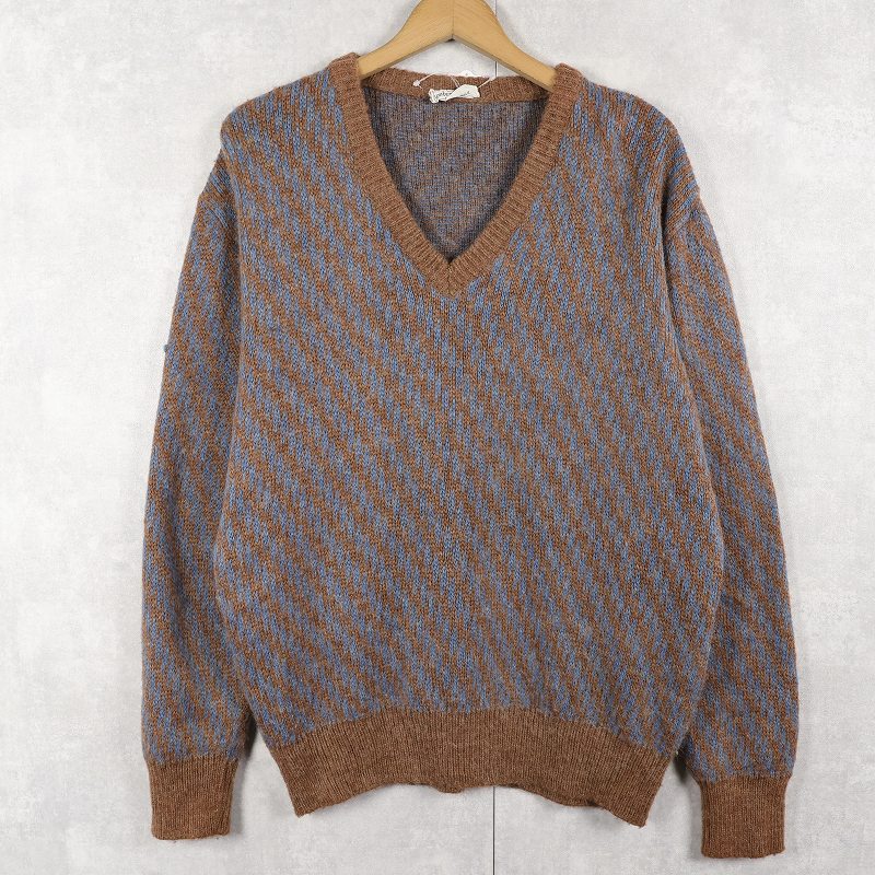 90’s umberto severi ITALY製 総柄 Vネック ウールニットセーター