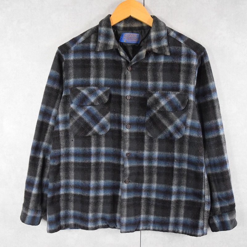 70’s PENDLETON USA製 オンブレーチェック柄 オープンカラーウールシャツ L