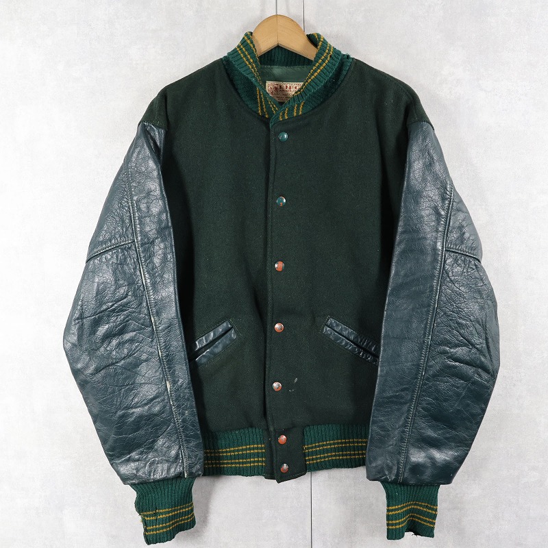 50’s H.L.Whiting Co. USA製 パッチ付き レザー×メルトンウールスタジャン NAVY SIZE44