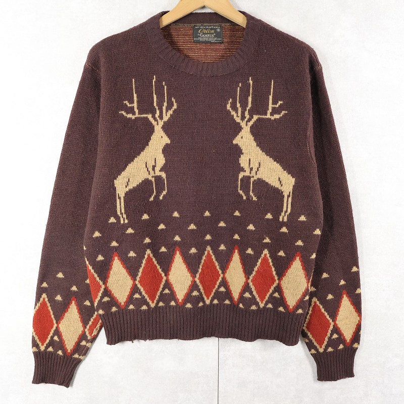 60〜70’s Orlon by CAMPUS USA製 トナカイ柄 ジャガードアクリルニットセーター XL