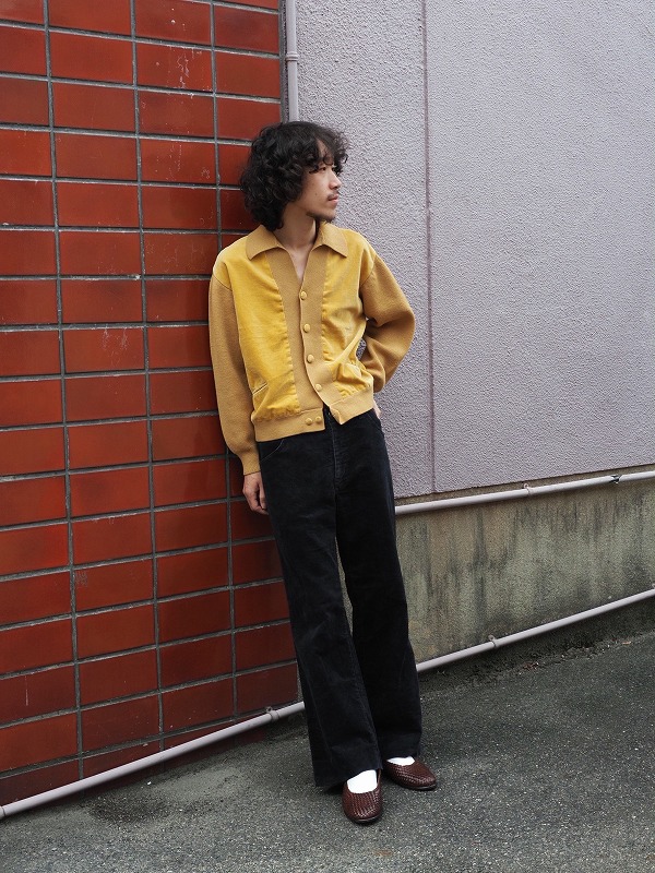 60〜70’s SAKS FIFTH AVENUE SPAIN製 スエード切り替え ニットカーディガン L