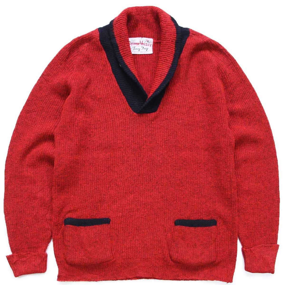 60s カナダ製 Squaw Valley by Tony Day ショールカラー パチポケ ツートン ニット セーター 赤×黒 M