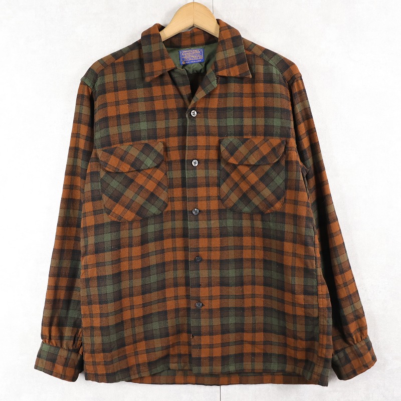 60’s PENDLETON チェック柄 オープンカラーウールシャツ M