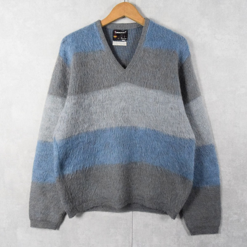 60’s Penneys TOWNCRAFT ボーダー柄 Vネック モヘアニットセーター M