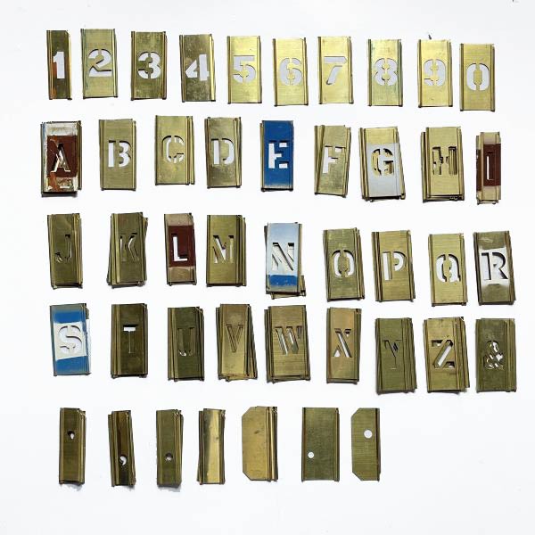 英数字 1インチ ステンシル 真鍮製プレート 124ピースセット 2.5cm アルファベット DIY ガレージ アメカジ ミリタリー D128