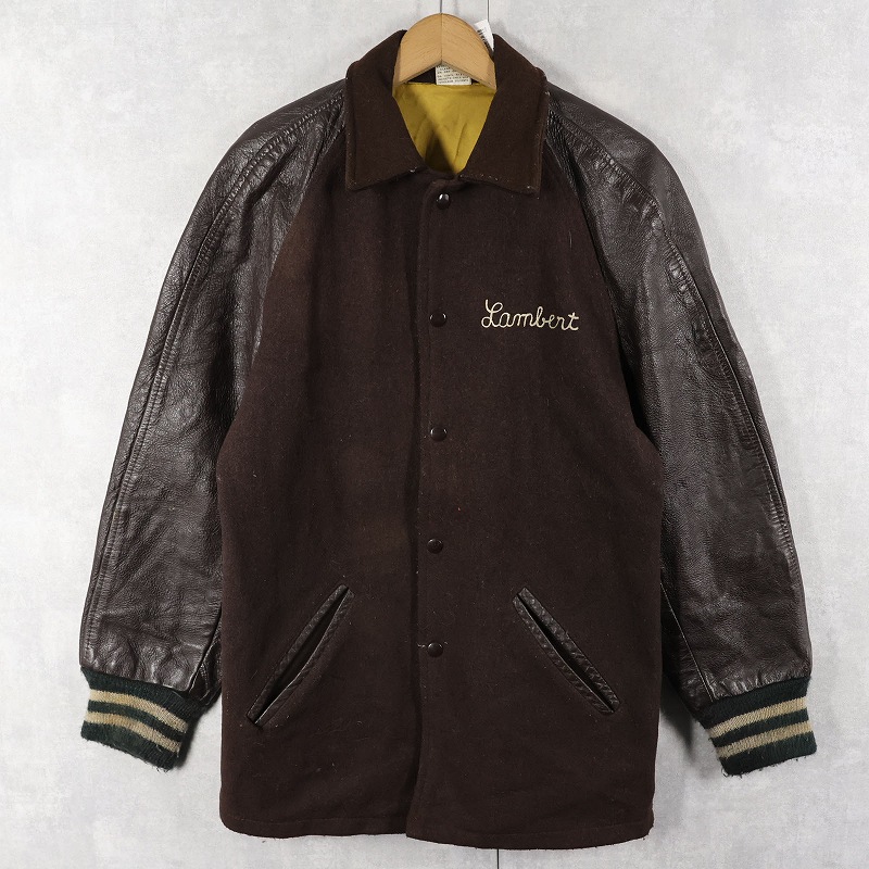 70〜80’s Custom Made WARD JACKET BY KAYE BROS. チェーン刺繍 パッチ付き レザー×メルトンウール スタジャン