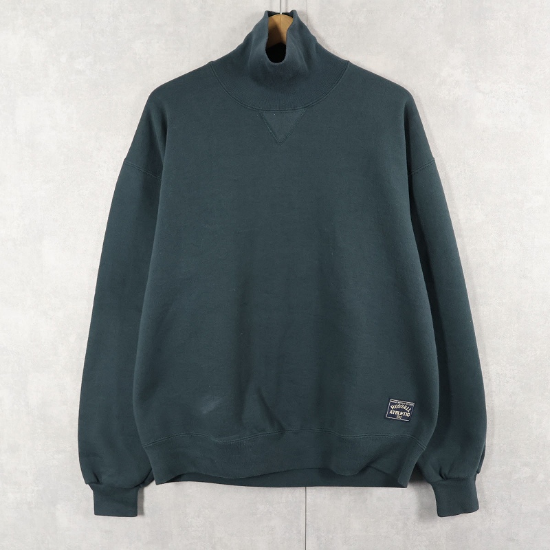 90’s RUSSELL ATHLETIC USA製 前V タートルネック 無地スウェット GREEN L