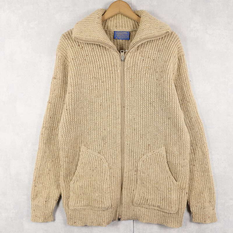 70’s PENDLETON USA製 ネップ混 ウールニットジップジャケット L