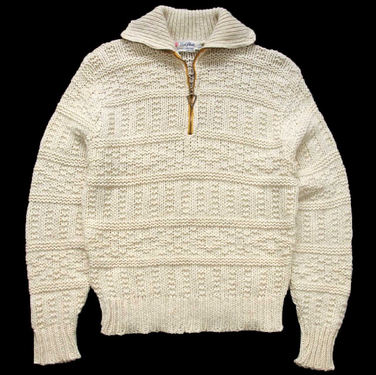 70s UNKNOWN 編み柄 アクリルニット カーディガン ナチュラル M