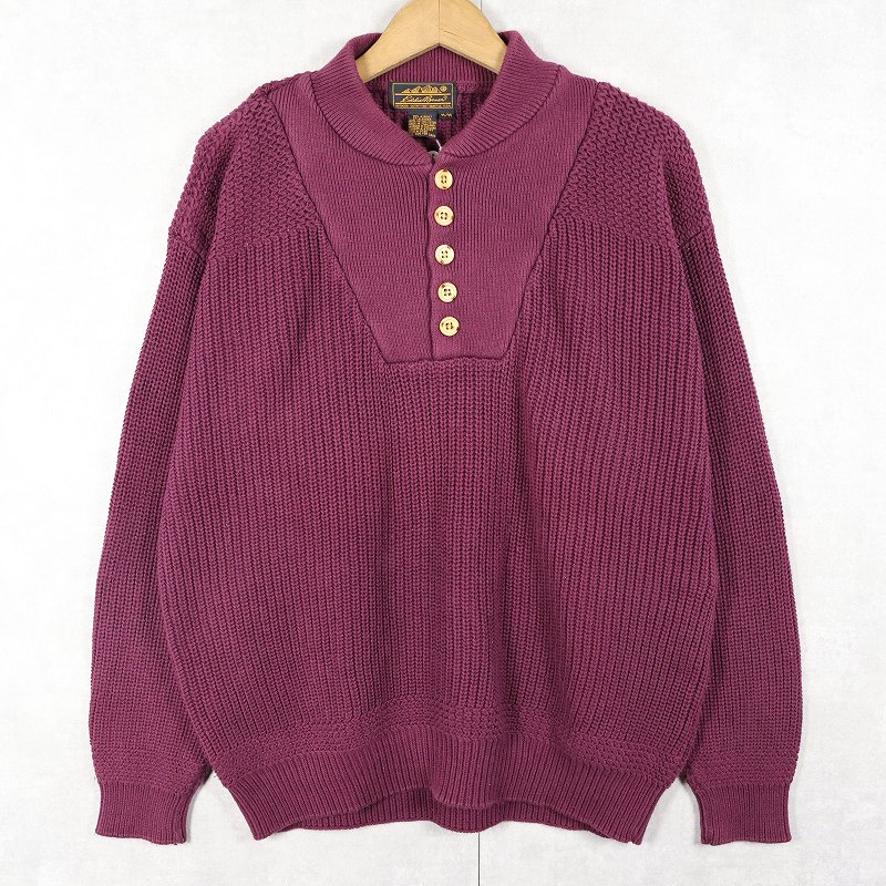 80〜90’s Eddie Bauer ヘンリーネック コットンニットセーター M