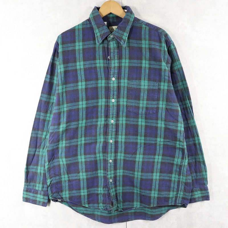80〜90’s L.L.Bean USA製 ブラックウォッチチェック柄 ライトネルシャツ L