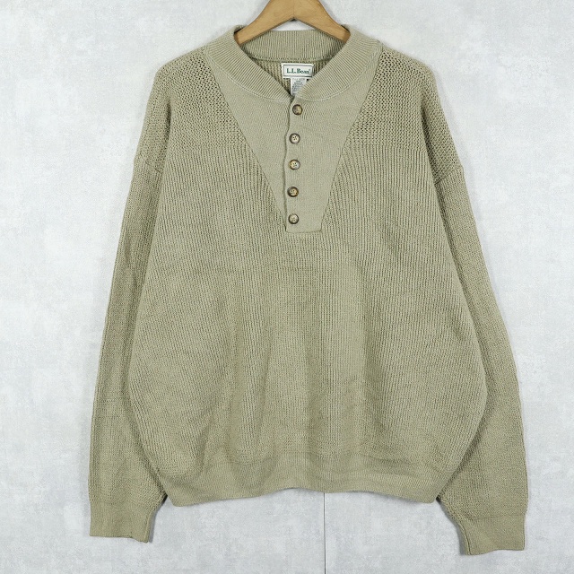 80〜90’s L.L.Bean USA製 ヘンリーネック コットンニットセーター L