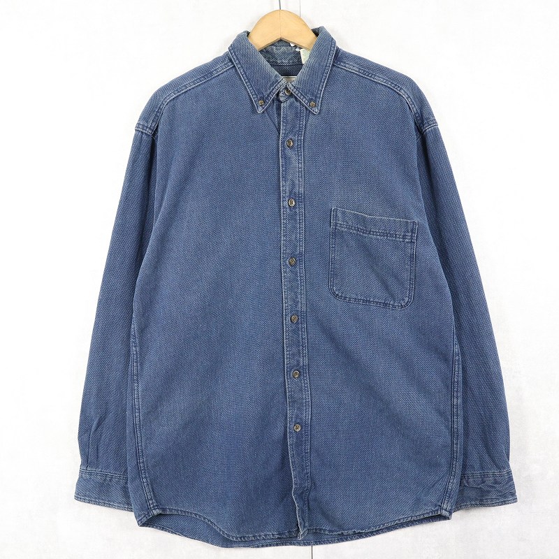 80〜90’s L.L.Bean USA製 刺子織り インディゴコットンボタンダウンシャツ XL