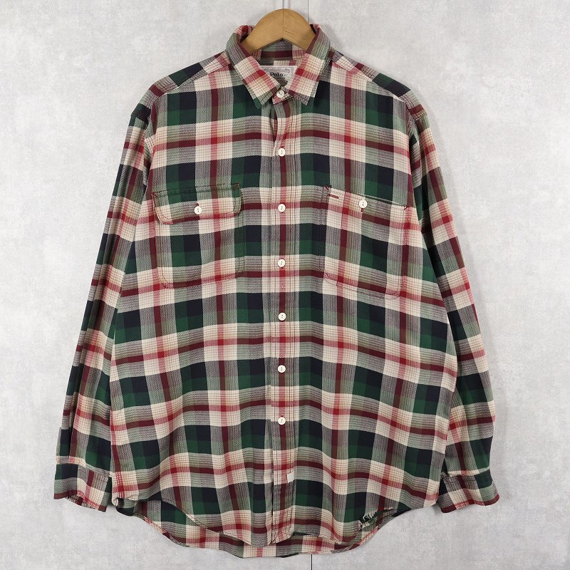 80〜90’s POLO Ralph Lauren “AUTHENTIC DUNGAREES” チェック柄 コットンワークシャツ L