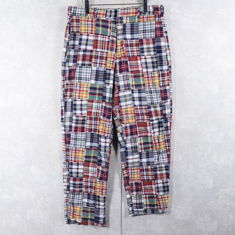 80’s〜 USA製 マドラスチェック柄 パッチワークパンツ W34