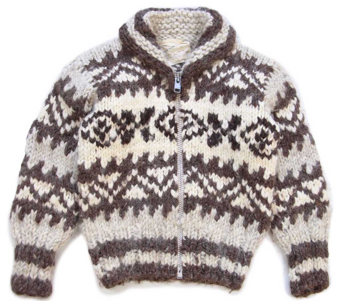80s 雪柄 ノルディック柄 ウール ハンドニット カウチンセーター キッズ