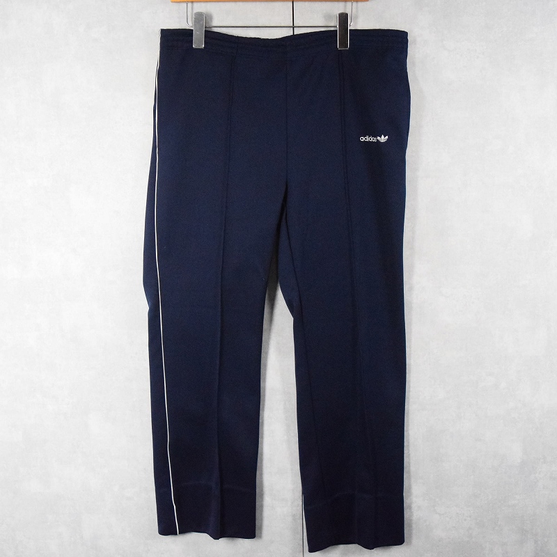 80’s adidas TAIWAN製 ロゴ刺繍 サイドライン トラックパンツ NAVY M