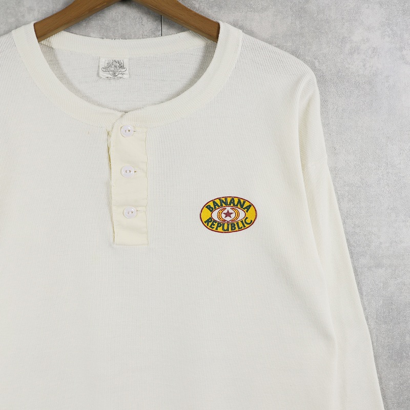 80’s BANANA REPUBLIC USA製 猫目ボタン ヘンリーネックアンダーシャツ L