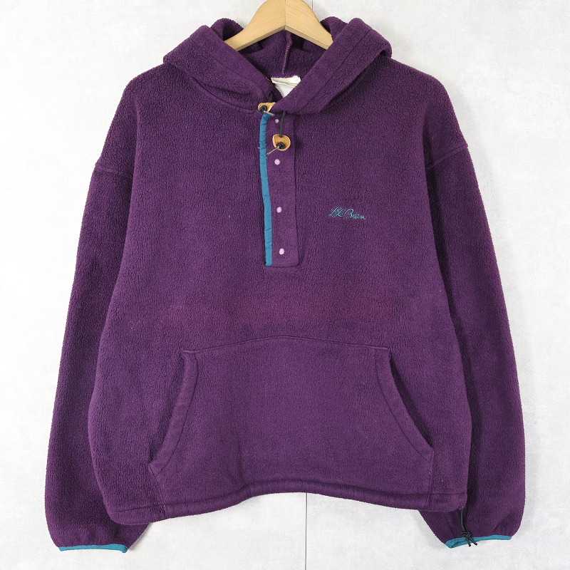 80’s L.L.Bean USA製 筆記体ロゴ刺繍 ハーフスナップフリースフーディー