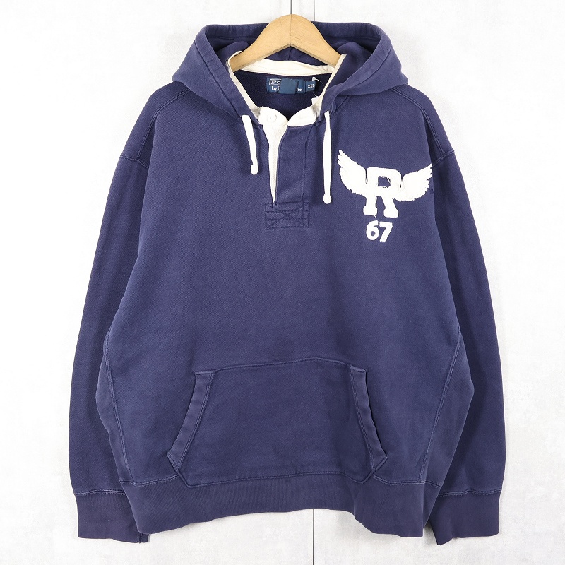 POLO Ralph Lauren Rウイングパッチ付き ヘンリーネック 後付けスウェットフーディ NAVY XXL
