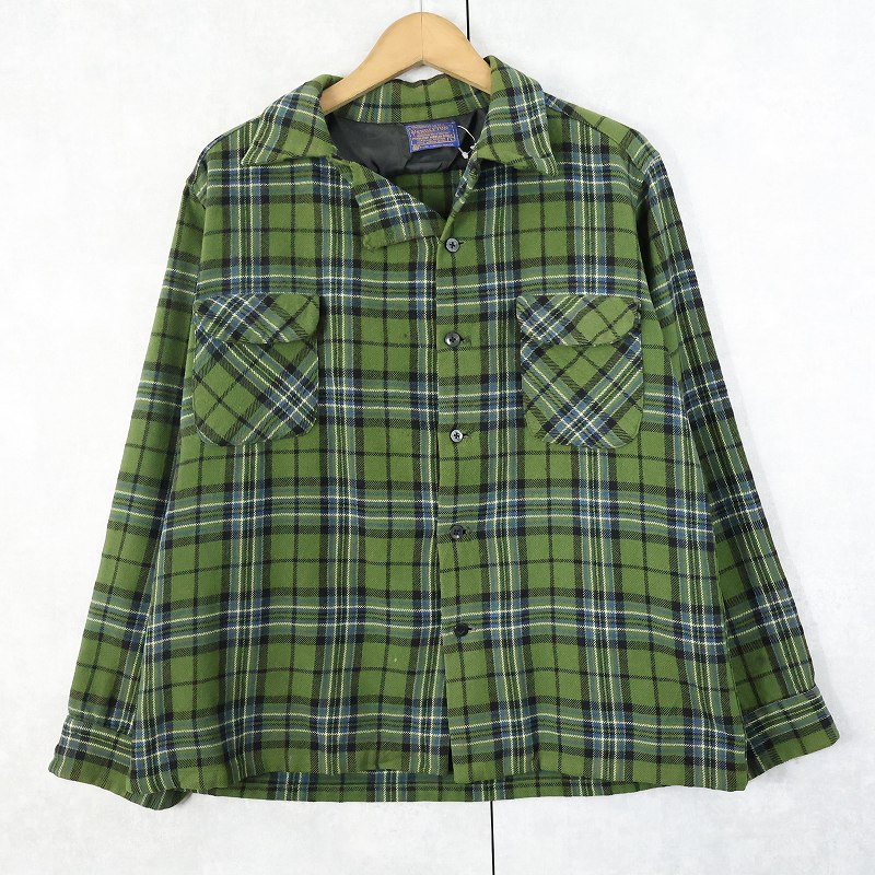 60’s PENDLETON チェック柄 ウールオープンカラーシャツ L