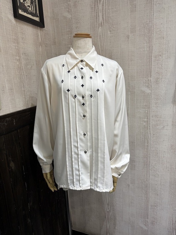 90s KORET エンブロイダリー メタルボタン ピンタック ドレスシャツ ブラウス