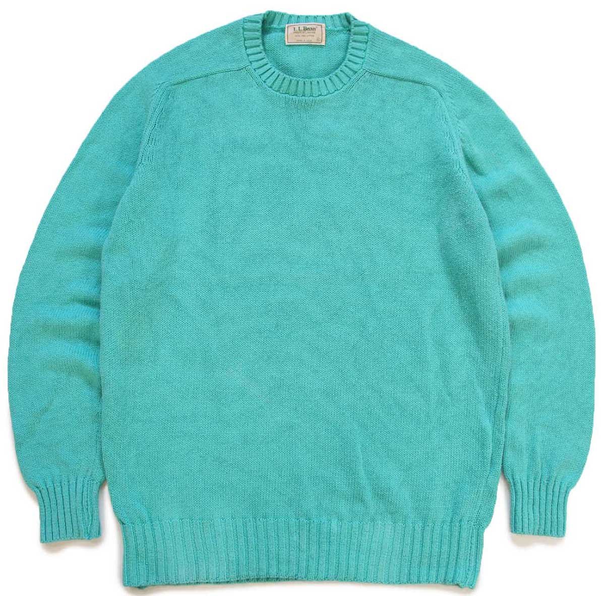 80s USA製 L.L.Bean サドルショルダー コットンニット セーター ティファニーブルー XL