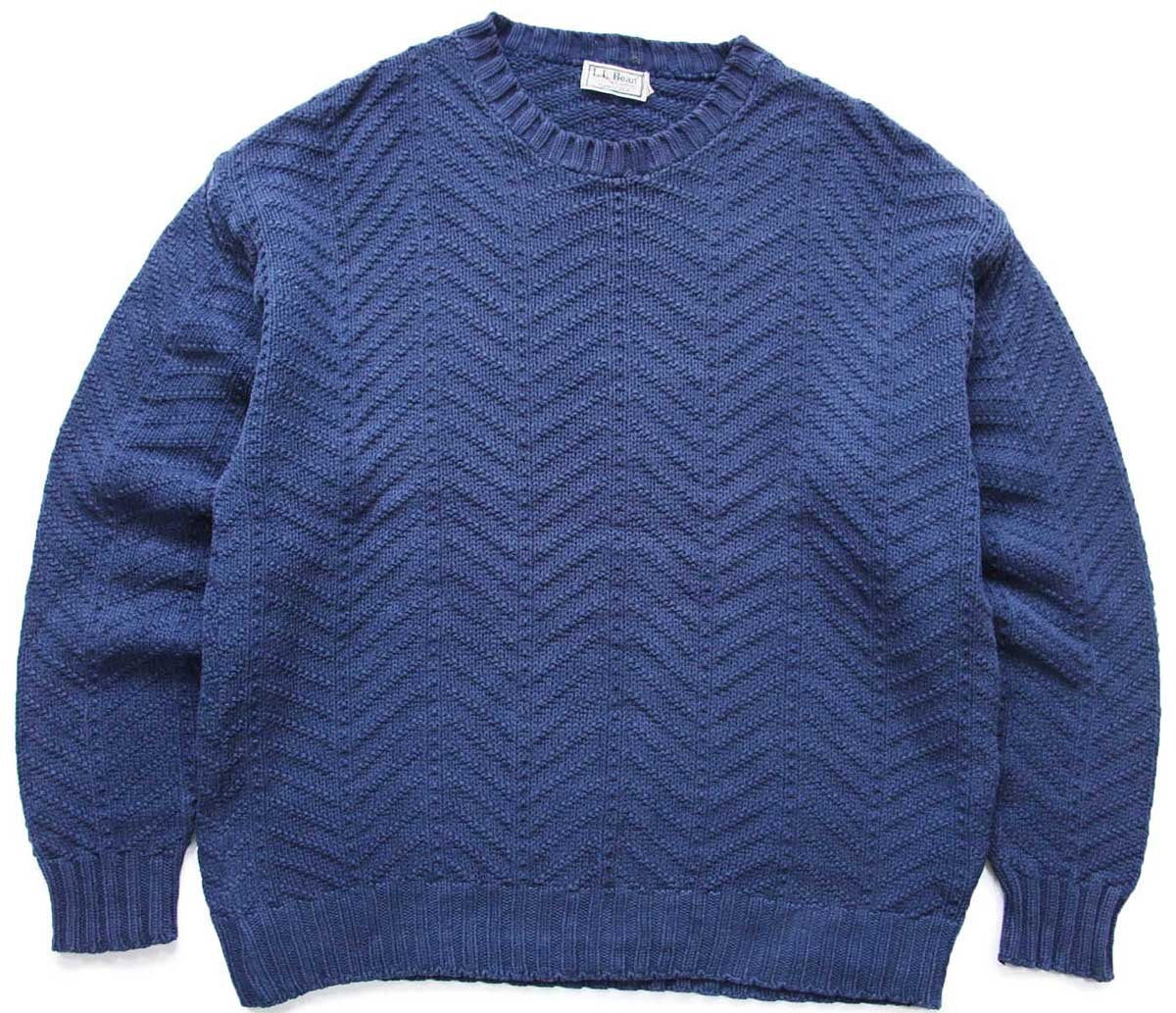 80s USA製 L.L.Bean 編み柄 コットンニット セーター ネイビー L
