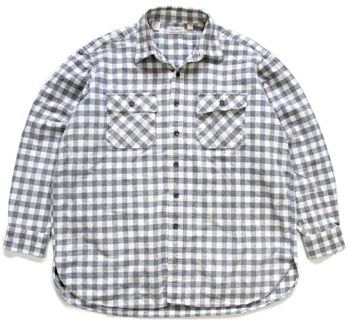 80s USA製 L.L.Bean CHAMOIS CLOTH SHIRT ギンガムチェック コットン シャモアクロスシャツ グレー×白 17.5