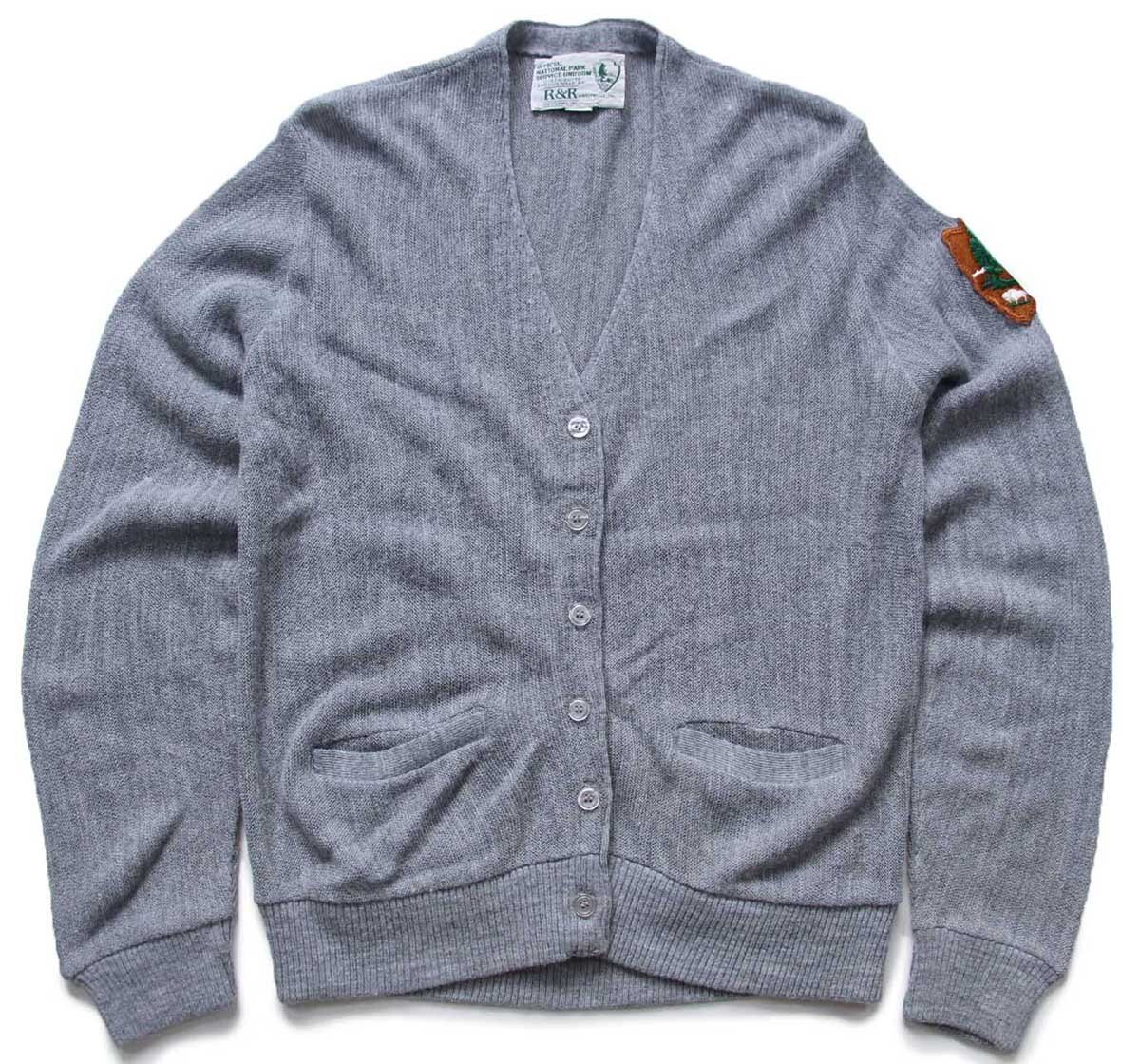 80s USA製 R&R NATIONAL PARK SERVICE パッチ付き パール編み アクリルニット カーディガン 杢グレー L-M