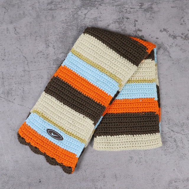 90〜2000’s NIKE ボーダー柄 ロゴ刺繡 アクリル×ウールニットマフラー