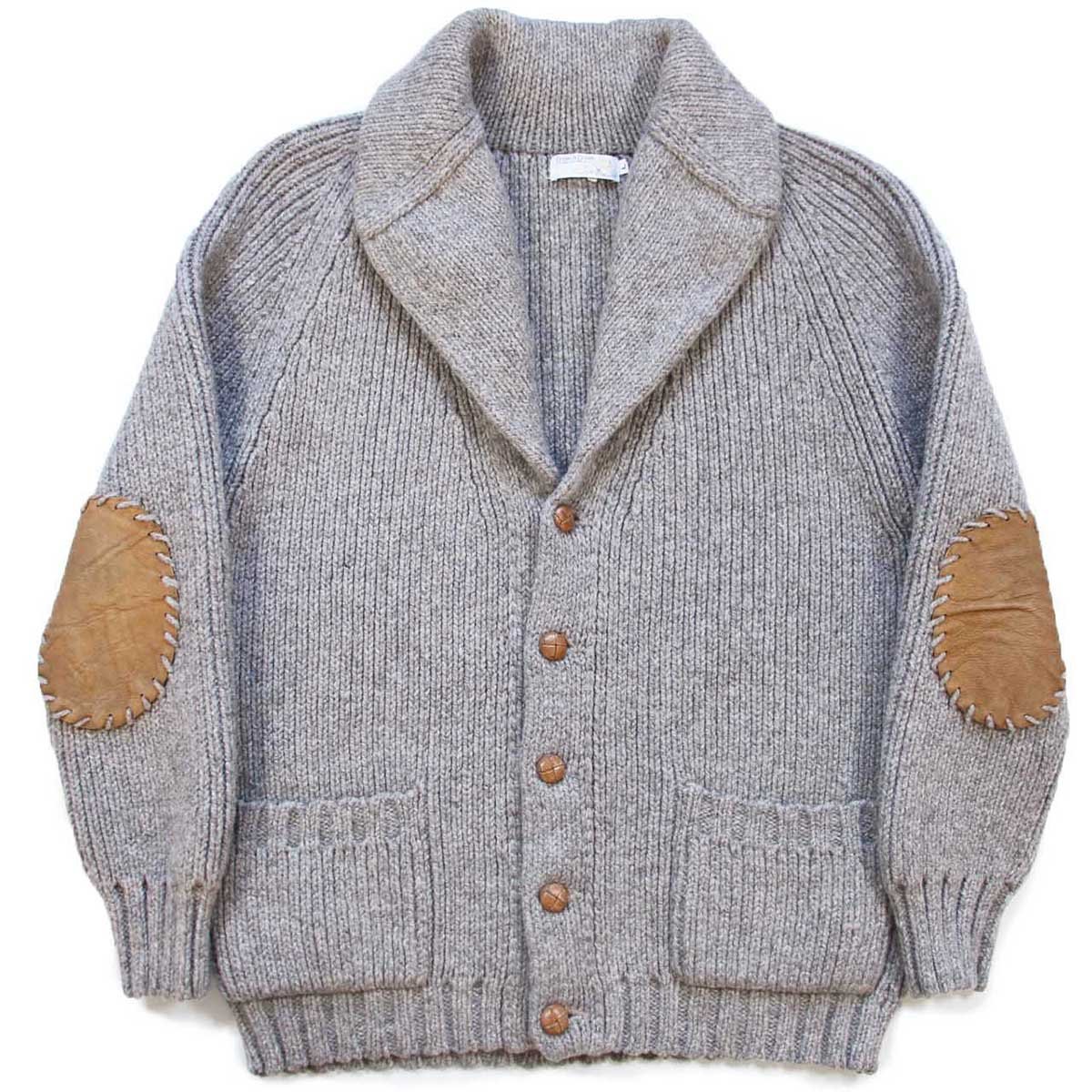 80s French Creek ショールカラー パチポケ&エルボーパッチ ローゲージ ウールニット カーディガン グレーベージュ L