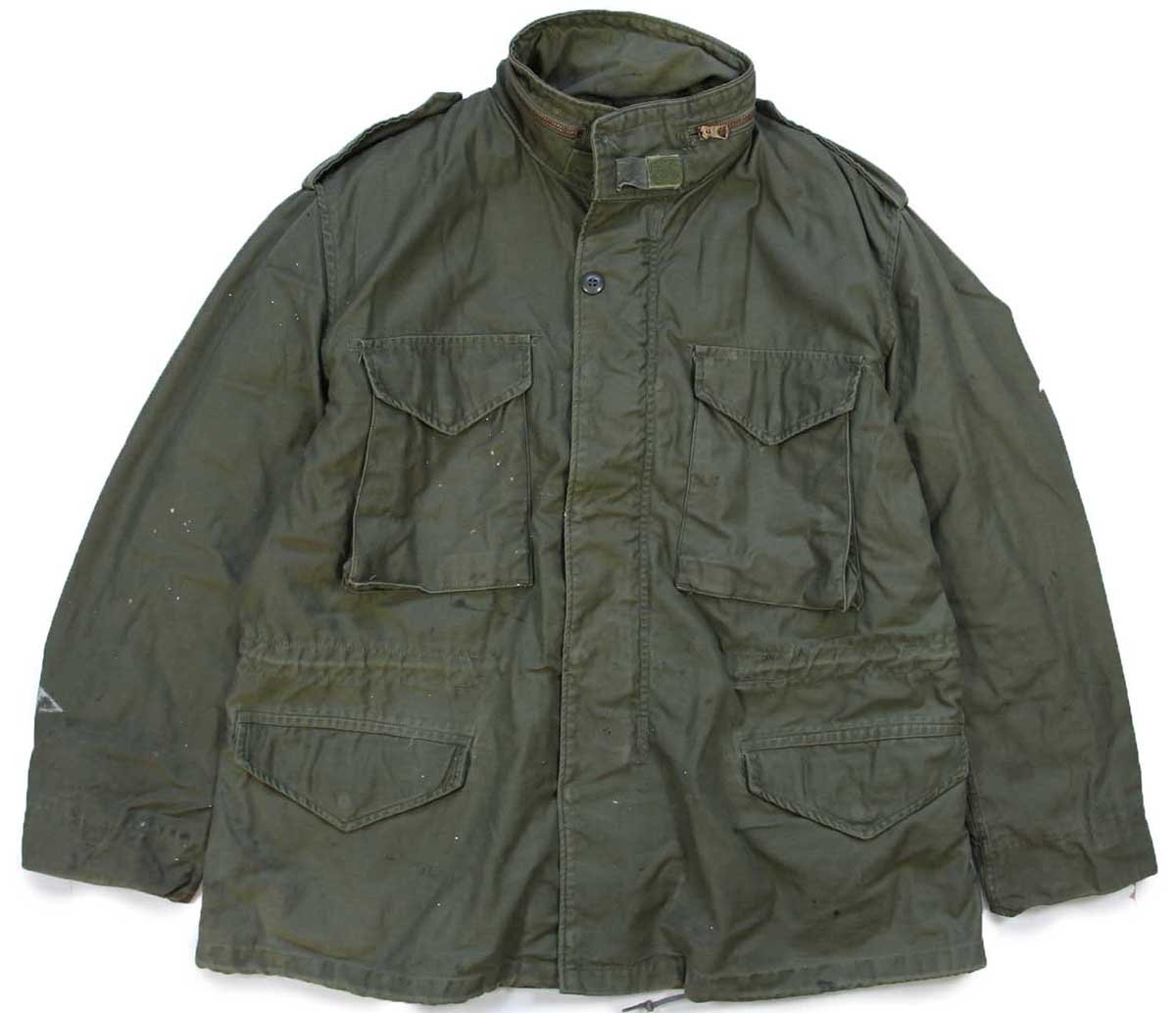 70s 米軍 U.S.ARMY ペンキ飛び M-65 フィールドジャケット オリーブグリーン L-S★ALPHAアルファ