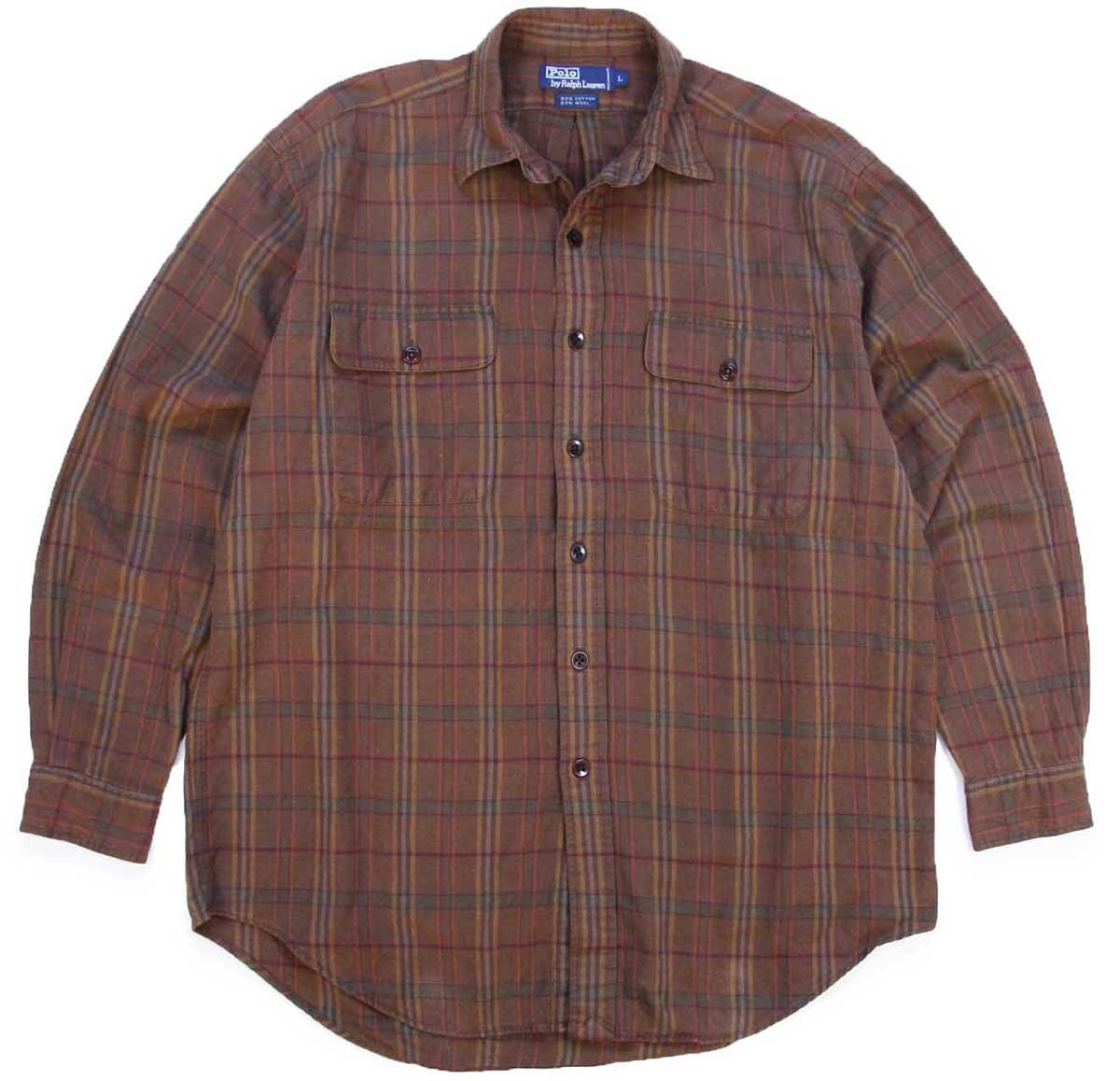 90s ポロ ラルフローレン タータンチェック コットン×ウールシャツ L