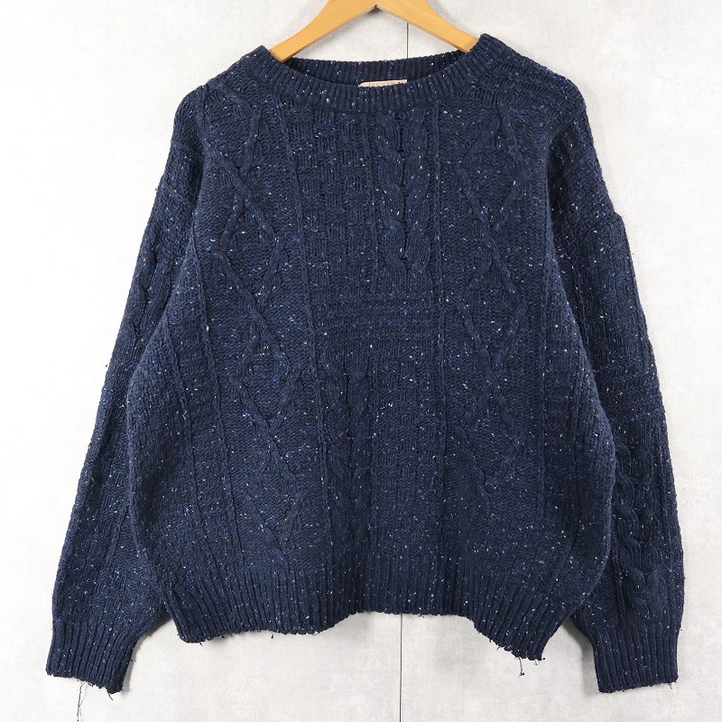 90’s〜 FOR SAIL カラーネップ混 ケーブルニットセーター NAVY