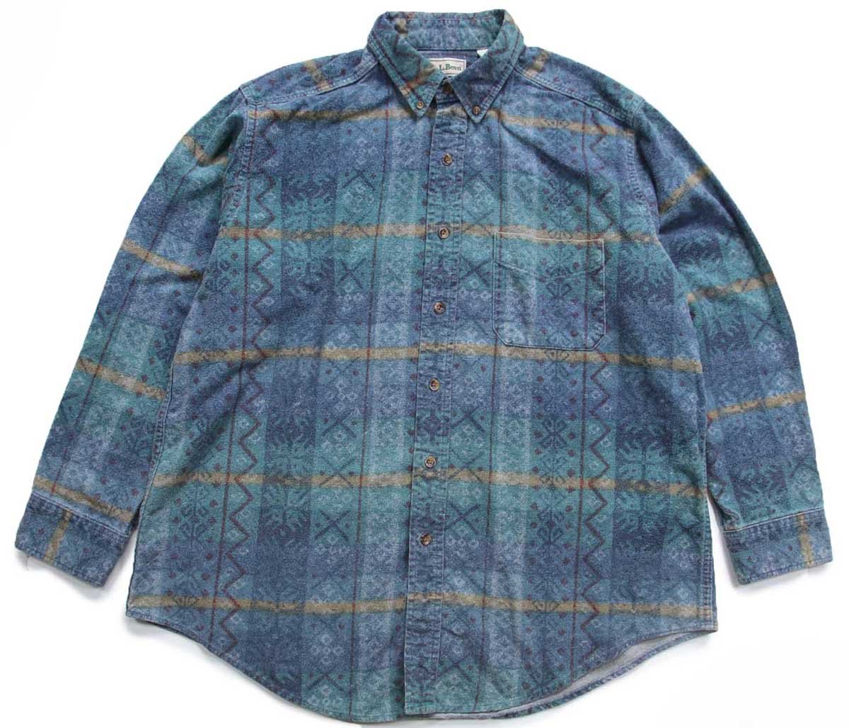 90s USA製 L.L.Bean フォークロア柄 ボタンダウン コットン シャモアクロスシャツ XL