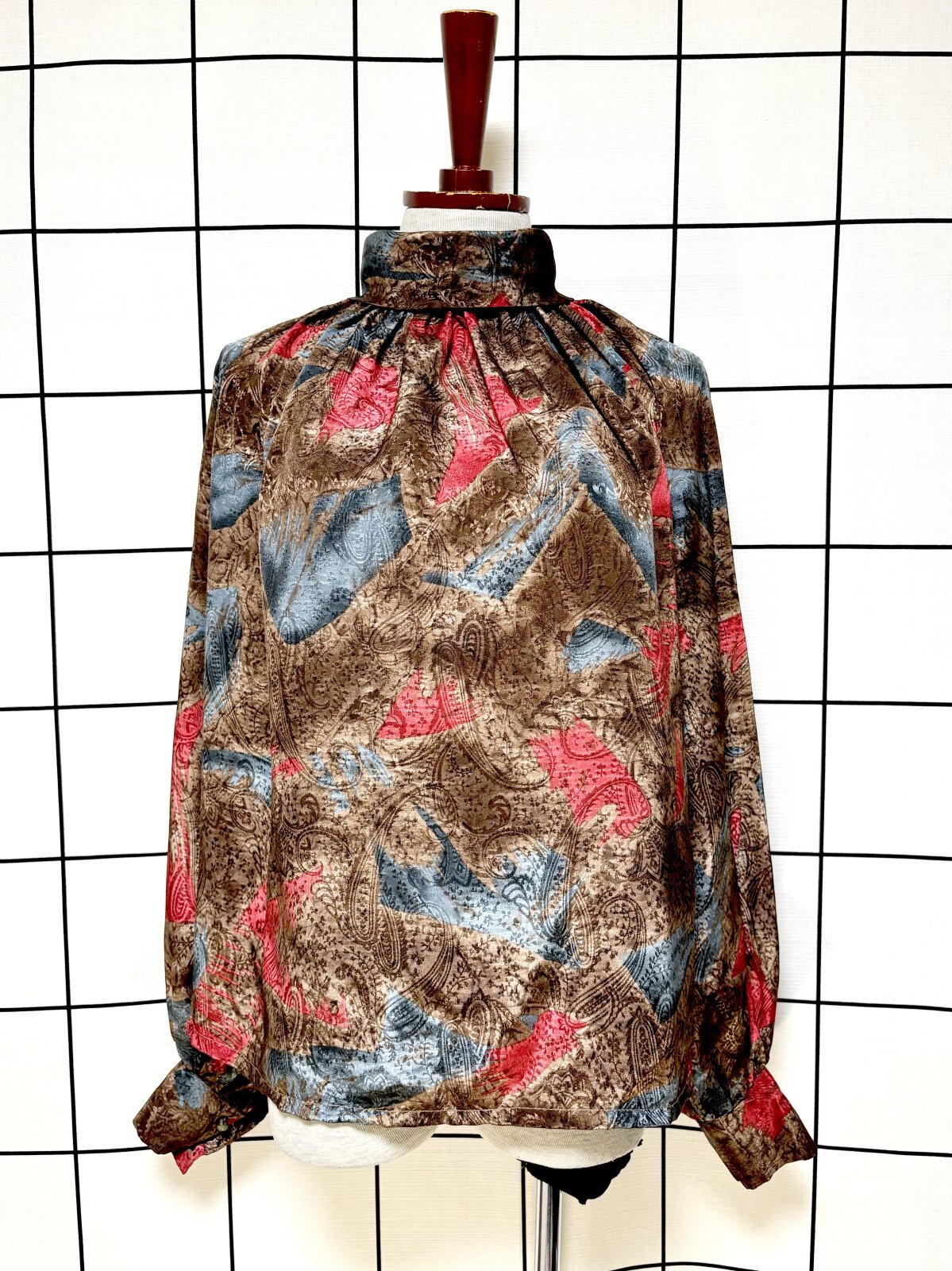 アート柄 タートルネック レトロ USA古着 シャツ ヴィンテージトップス
