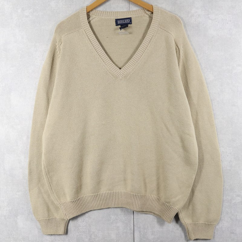 90’s LANDS’END USA製 Vネック コットンニットセーター L