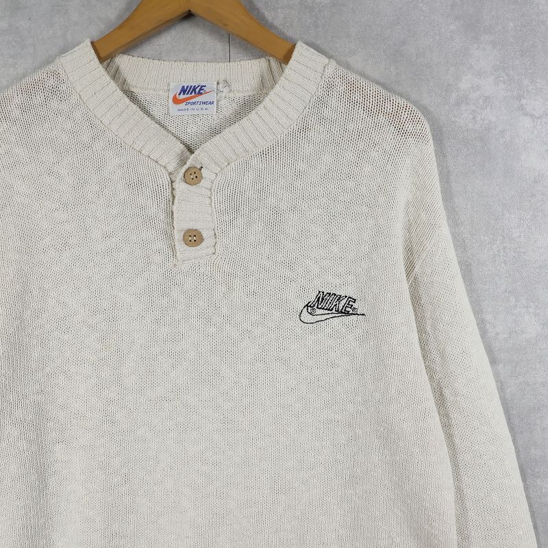 70〜80’s NIKE ロゴ刺繍 ヘンリーネック コットンニットセーター L