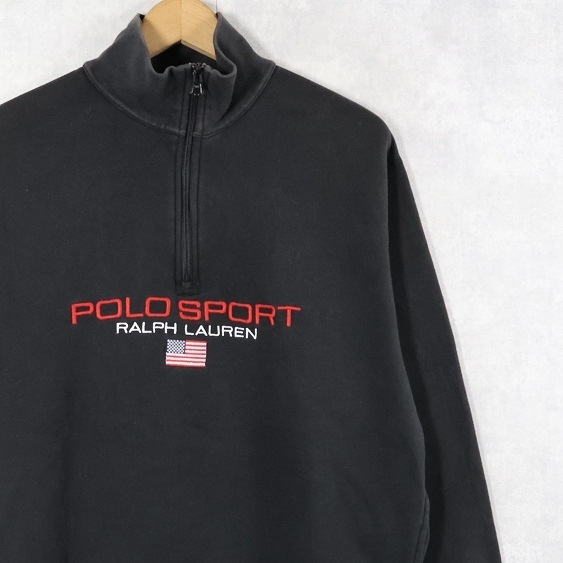 90’s Ralpha Lauren POLO SPORT ロゴ刺繍 ハーフジップ ハイネックスウェット BLACK M