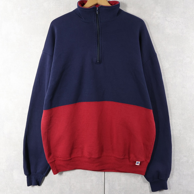 90’s RUSSELL ATHLETIC USA製 ハーフジップ 2トーンスウェット XL