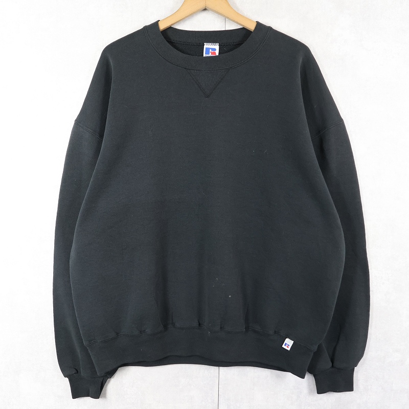 90’s RUSSELL ATHLETIC USA製 前V 無地スウェット BLACK XL