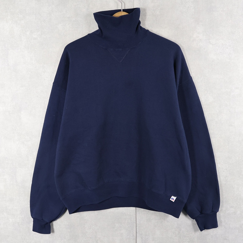 90’s RUSSELL ATHLETIC USA製 前V タートルネック 無地スウェット NAVY L