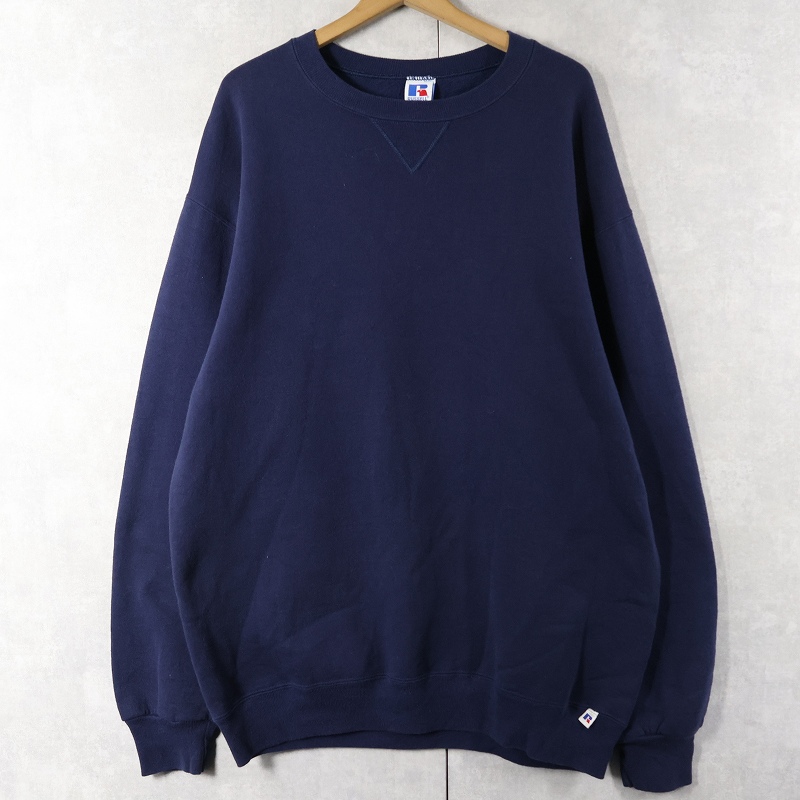 90’s RUSSELL ATHLETIC USA製 前V 無地スウェット NAVY XLT