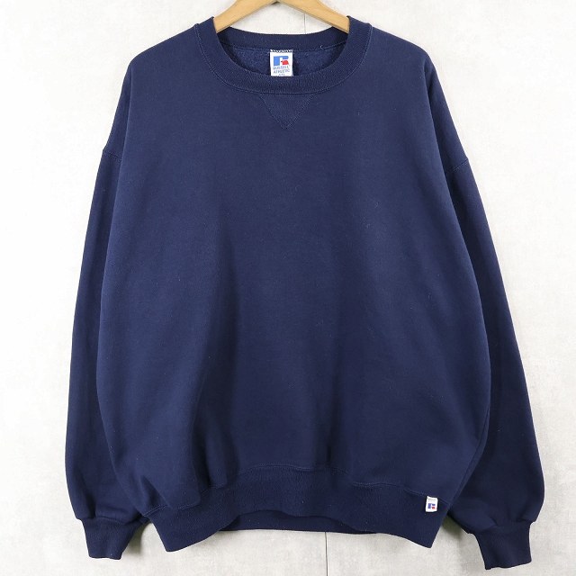 90’s RUSSELL ATHLETIC USA製 前V 無地スウェット NAVY XXL