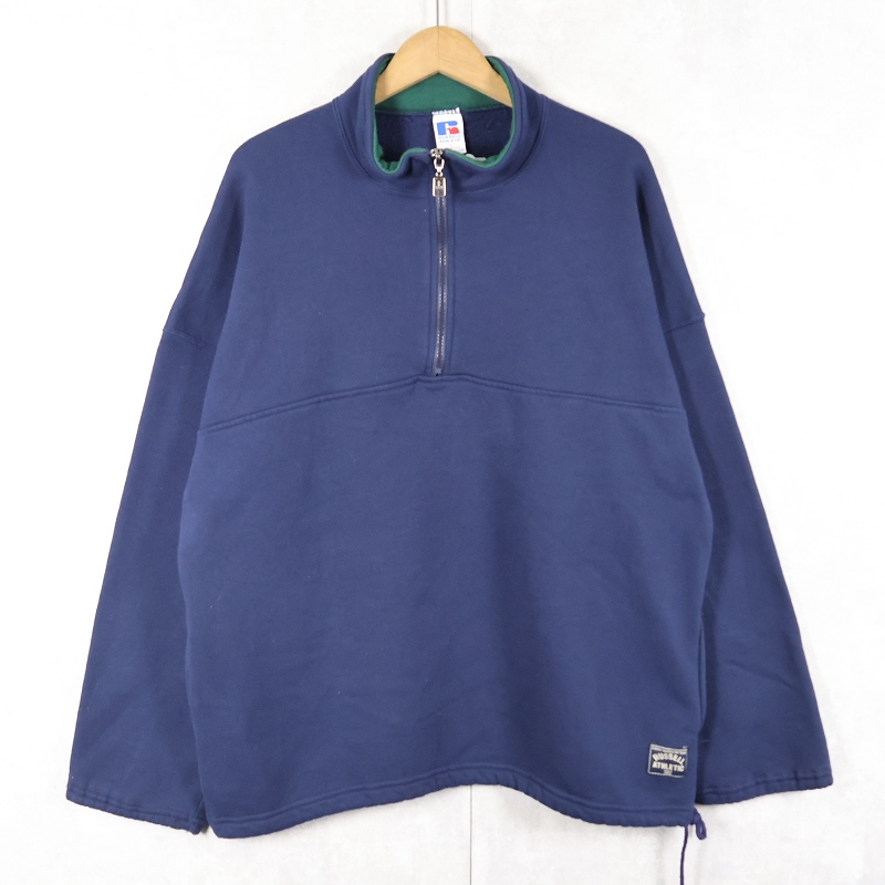 90’s RUSSELL ATHLETIC USA製 無地 ハーフジップスウェット NAVY L