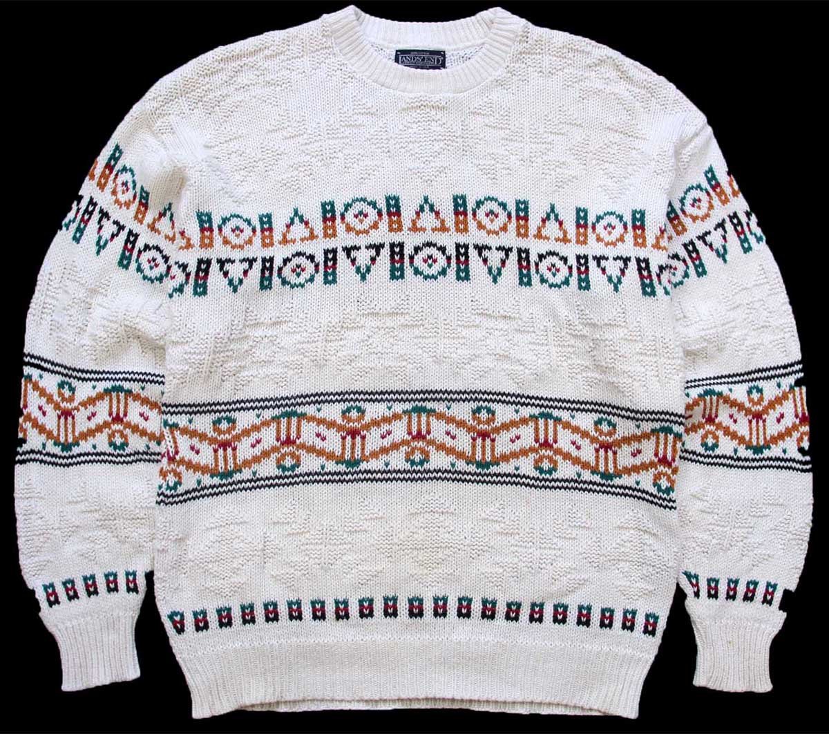 90s USA製 LANDS’ENDランズエンド フォークロア 編み柄 コットンニット セーター M