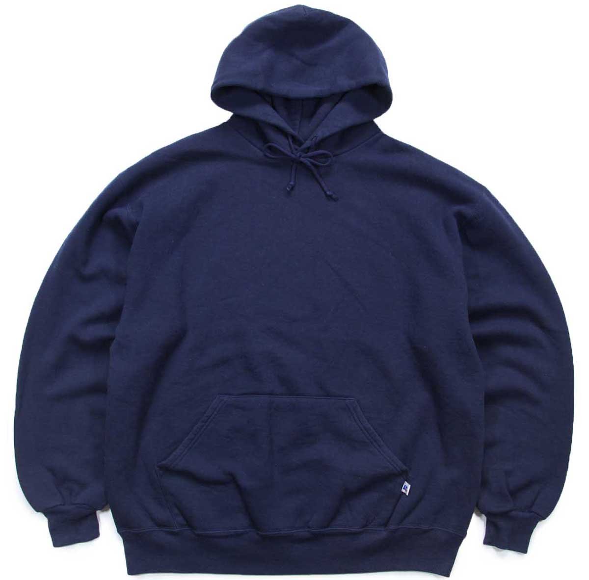 90s USA製 RUSSELLラッセル 無地 スウェットパーカー 紺 L★D フーディー ブランク