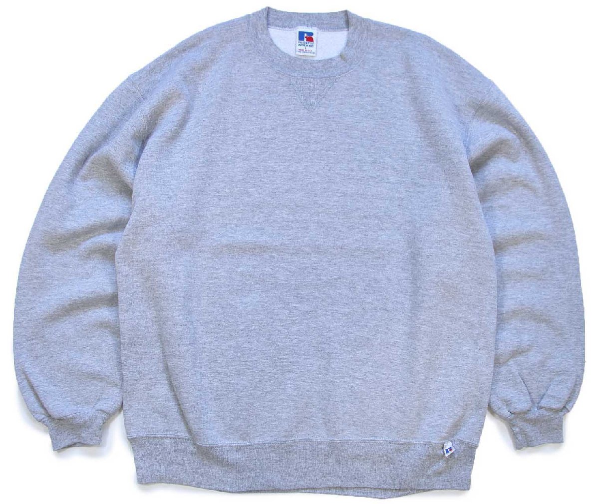 90s USA製 RUSSELLラッセル 無地 前V スウェット 杢グレー L★ブランク