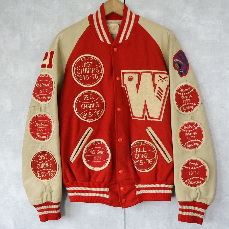 70〜80’s Holloway ワッペン付き ウール×レザースタジャン 44